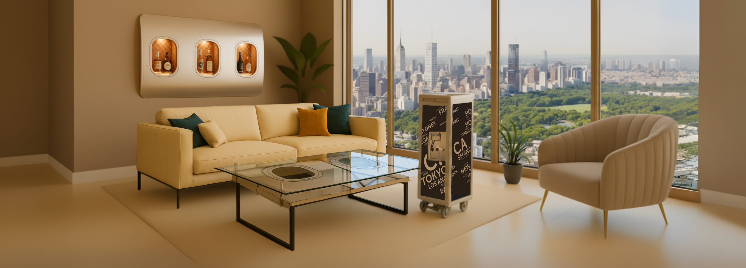Aus echten Flugzeugfenstern gefertigt, setzen unsere Wandbars Statements an der Wand. Mit optionaler LED-Beleuchtung & Smart-Home-Anbindung präsentieren sie Wein, Bücher oder Dekoration stilvoll – im Essbereich, Wohnzimmer oder Empfangsbereich.