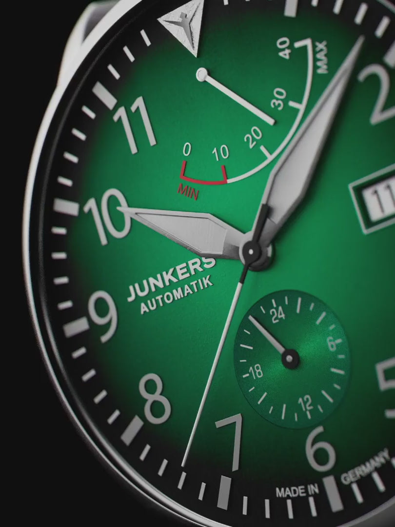 Junkers Flieger Gangreserve Grün mit Metallarmband