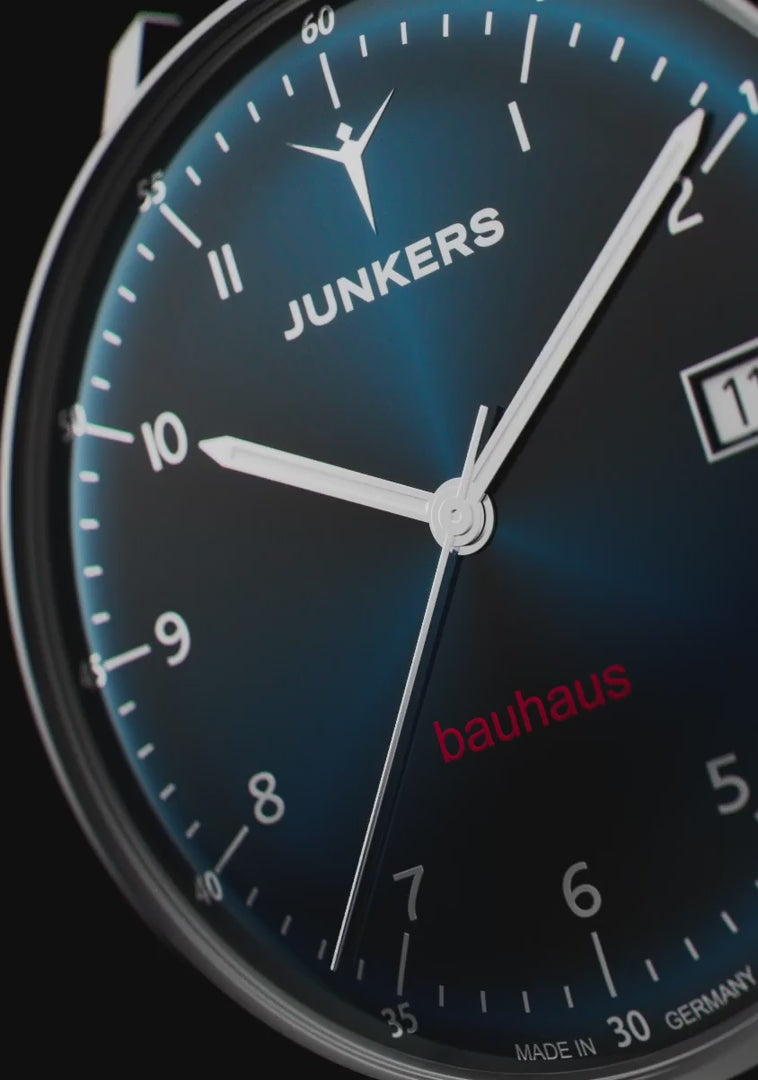 Junkers Bauhaus Saphir Automatik Blau mit Lederarmband