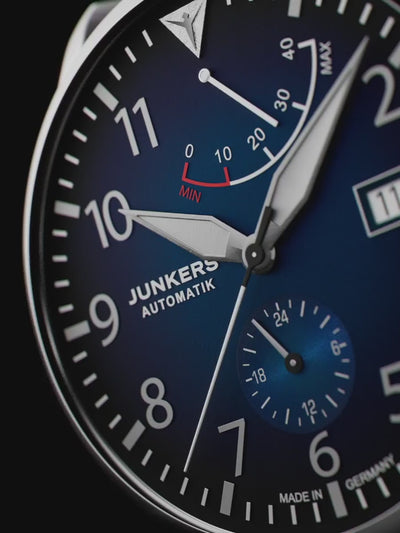 Junkers Flieger Gangreserve Blau mit Metallarmband