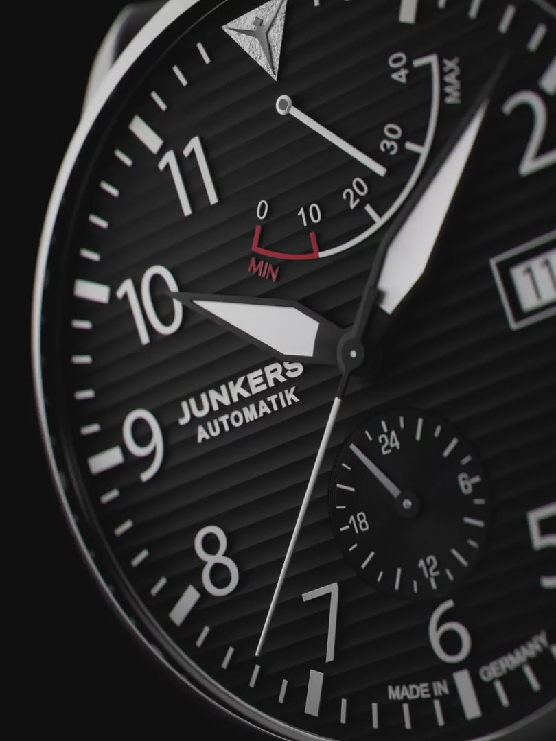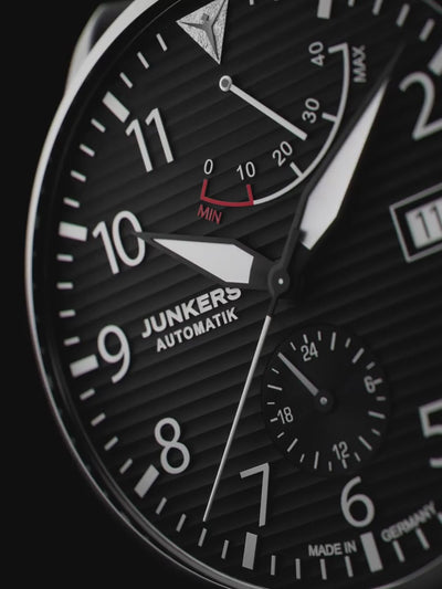Junkers Flieger Gangreserve Schwarz mit Lederarmband
