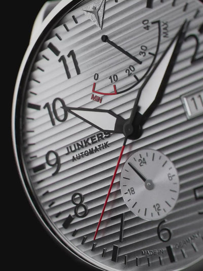 Junkers Flieger Gangreserve Silber mit Lederarmband